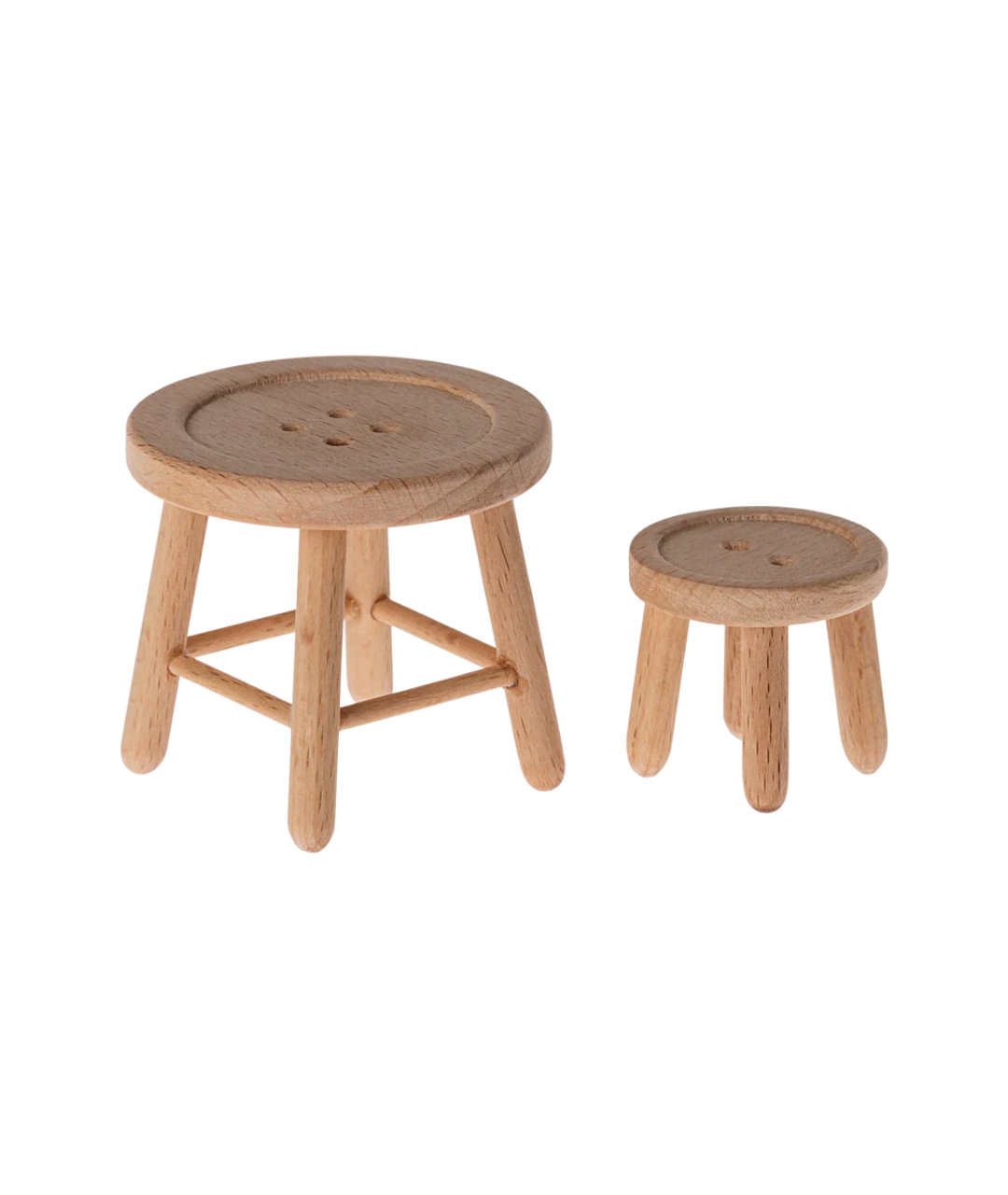 A stool and table set made for the mouse family. It is inspired by buttons and can be mixed with other mice furniture and accessories to create a lovely home. It fits perfectly into the Mouse hole Farmhouse.