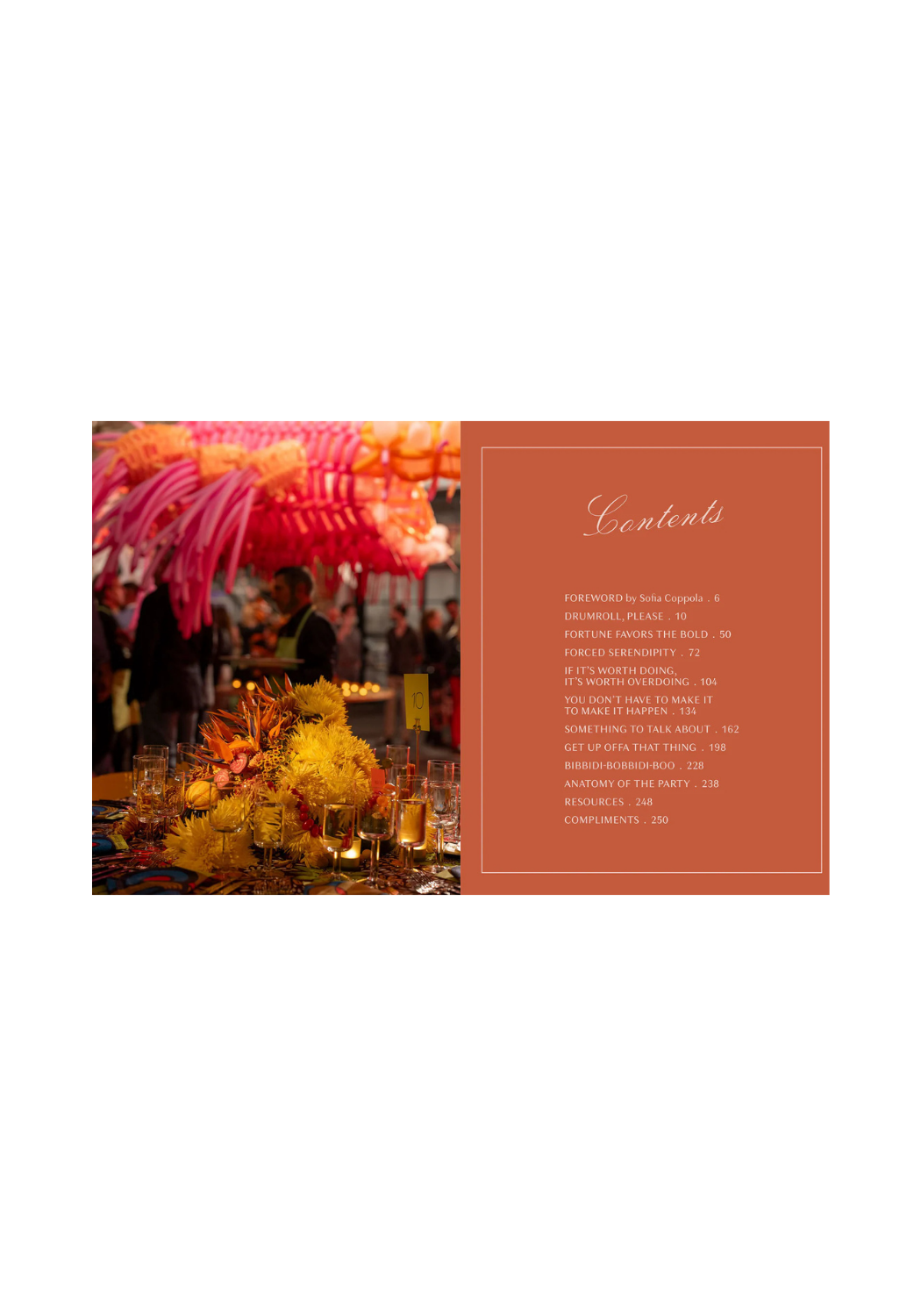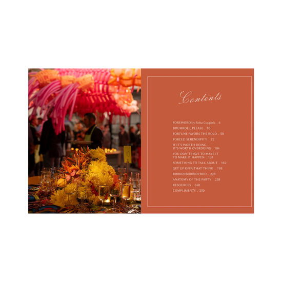 This book—like Rebecca Gardner's parties—is a decadent feast for the eyes, with a foreword by Sofia Coppola and photography that captures the surprise and delight of Gardner’s hyperbolic entertaining style. From a brass band leading guests to dinner along the tracks of the Napa Valley Wine Train to a pink-poodle-themed holiday party with a bountiful buffet of retro desserts, the pages burst with entertainments, heavy pours, and flattering light as all the elements combine in a perfectly orchestrated yet seemingly effortless way that makes it impossible for guests not to have a screaming blast!