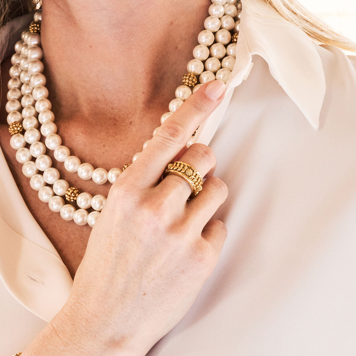 Wreathed with an orderly row of dainty leaves and a sprinkling of beautiful berries, this golden ring brings a feminine flourish and a little garden splendor to whatever you’re wearing!