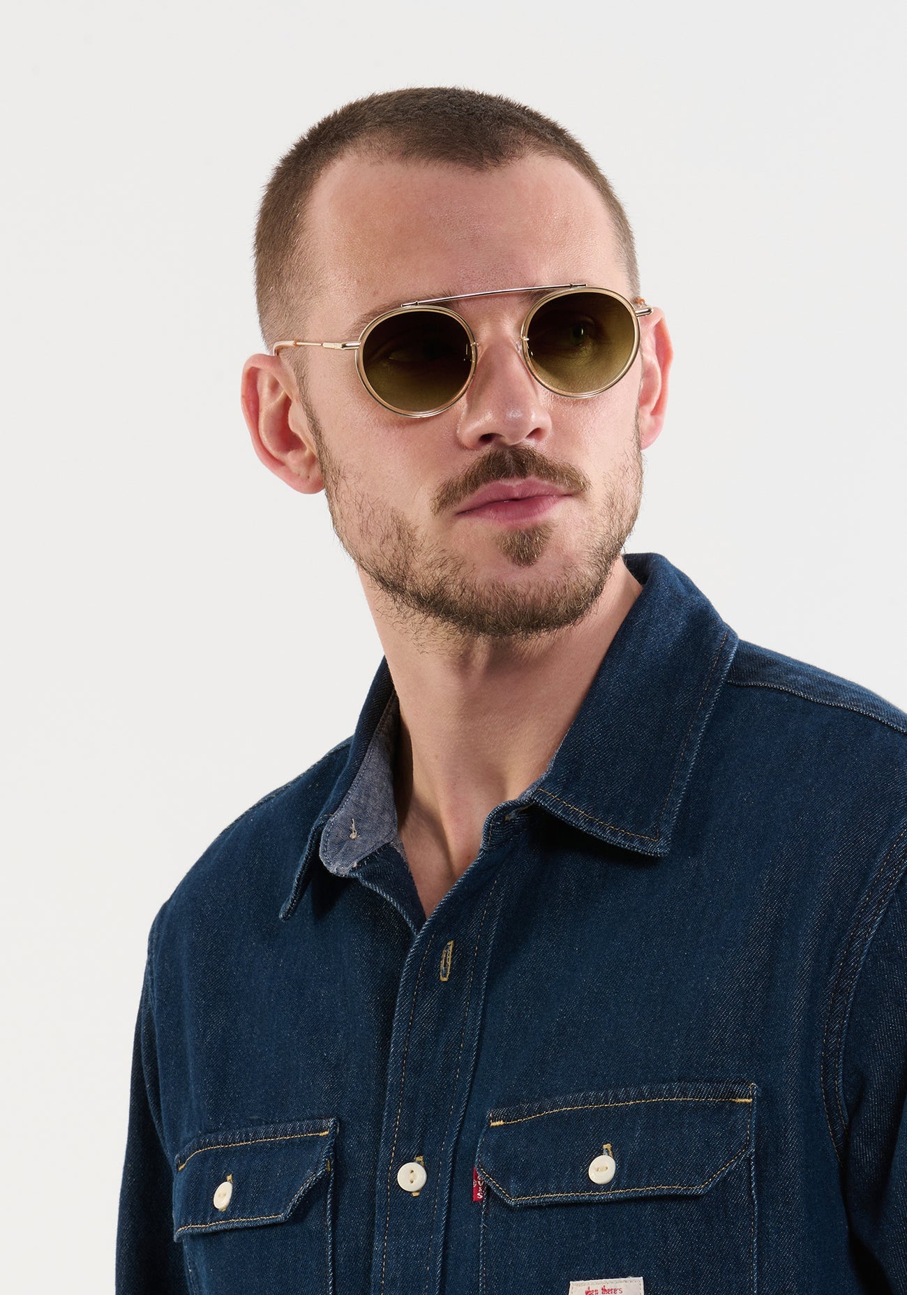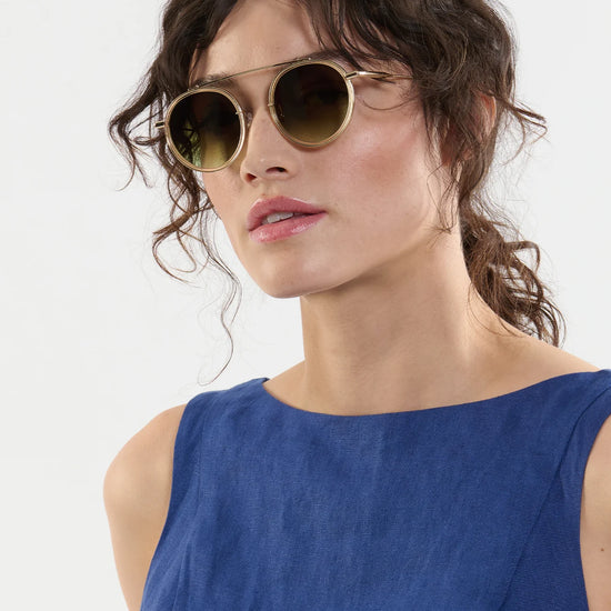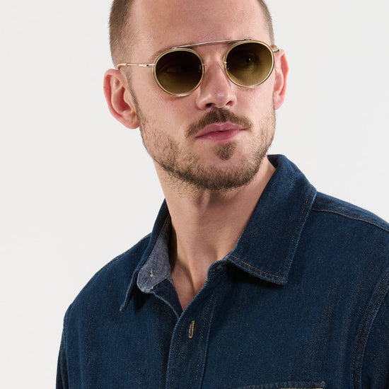 An archival frame made modern, CONTI is Krewe's offbeat spin on the classic aviator silhouette. Featuring a nearly weightless construction, luxe single brow bar, and a small to average look, this style is as iconic & enduring as the historic New Orleans street it’s named after.