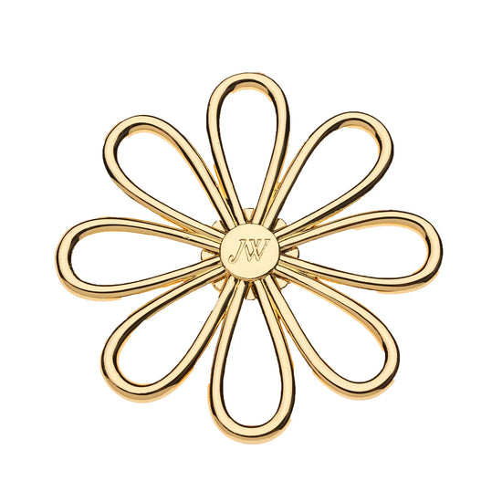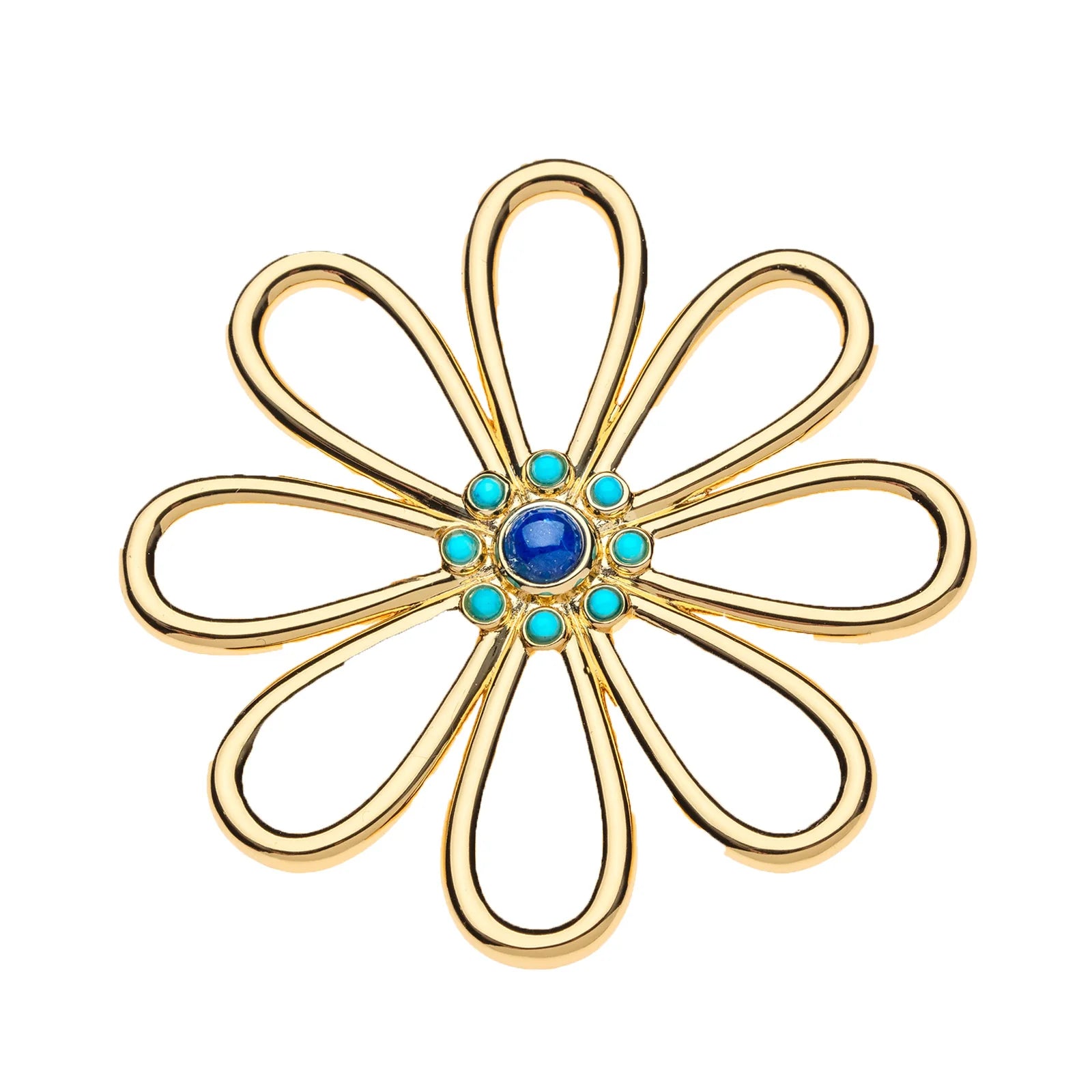 From the Jane Win x La Vie Collection, this oversized, chic and slightly irreverent flower is accented with lapis and turquoise stones for bolts of color. Meant to be layered with a million gold chains. There’s a bit of a 90’s vibe. Just add caftan for instant style. C’est La Vie!