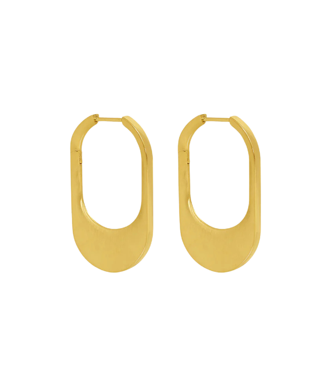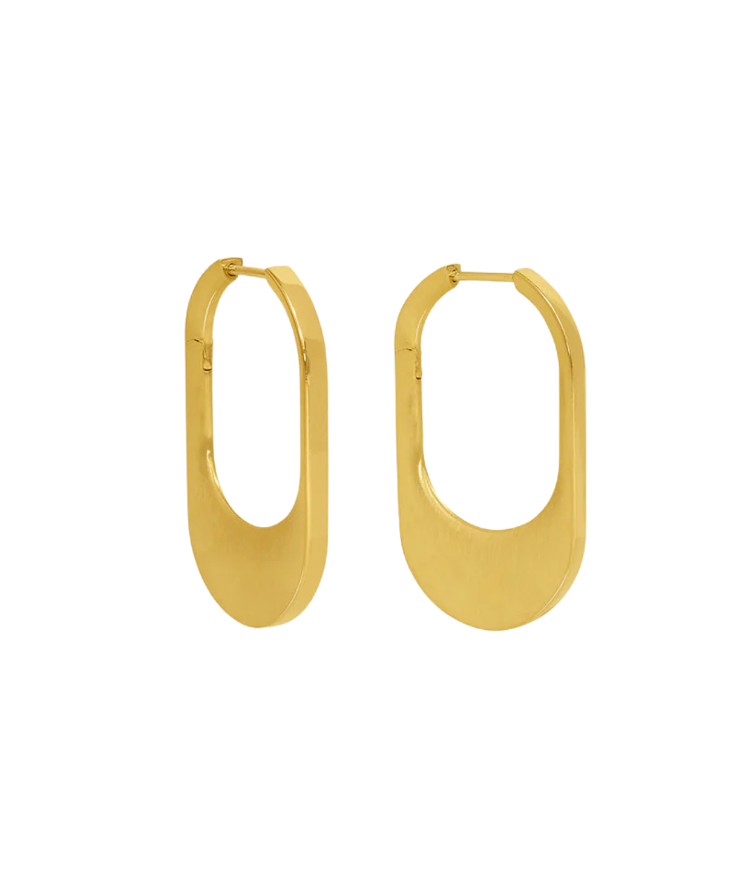 Want to look put-together with minimal effort? This hoop is for you. Taking cues from New York City with a fluid shape, just-right thickness and brushed finish, these hinge-closure earrings give any outfit a modern edge.