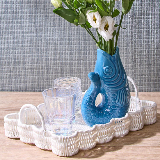 An old favorite back in a new color - The Under The Sea Iridescent Set of 4 Stackable Fish Glasses adds a playful and colorful touch to your drinkware collection. Each 7.5 oz. glass features an embossed fish design with an iridescent finish that shimmers beautifully in the light. Stackable for easy storage and packaged in a gift box, they're perfect for everyday use or gifting. in style!
