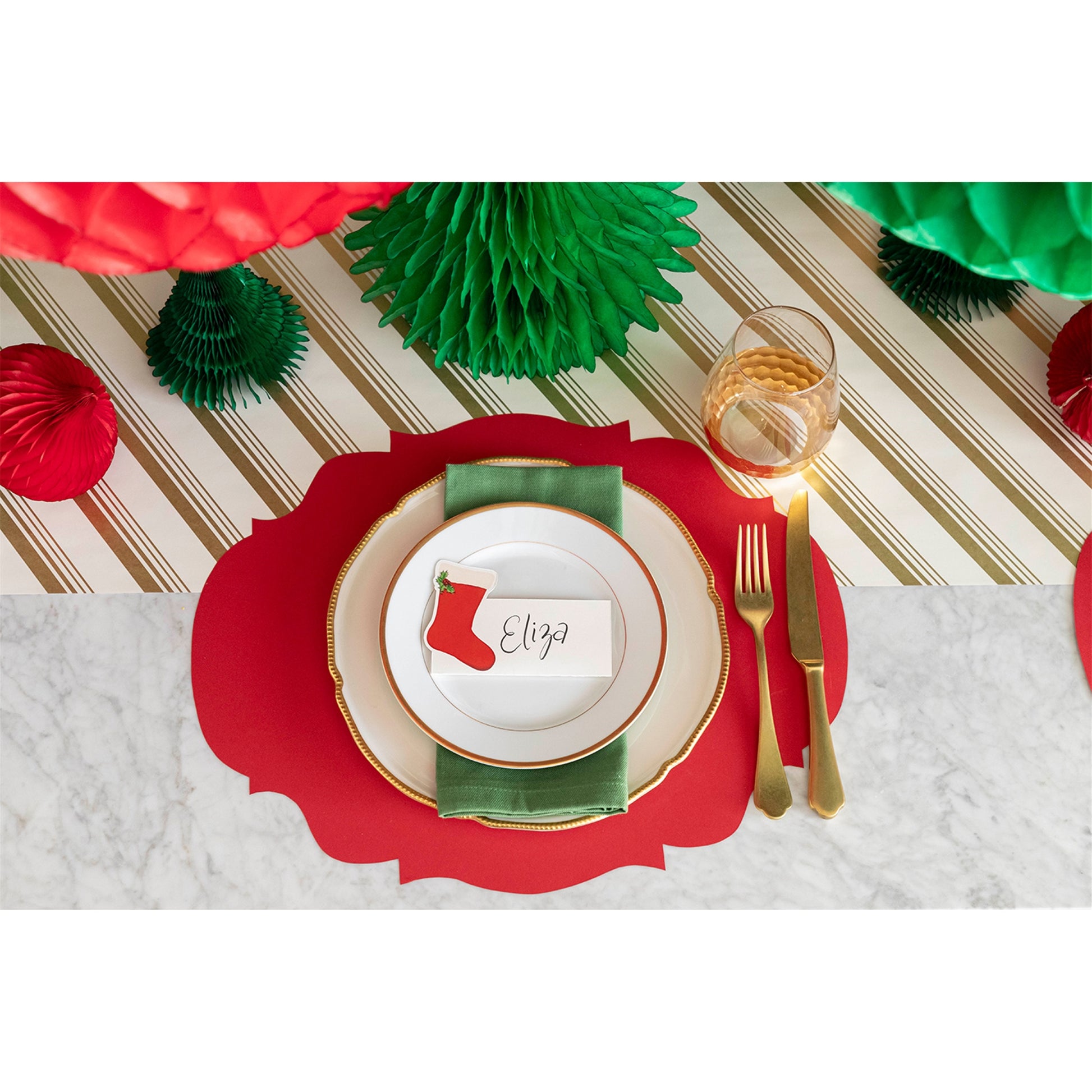Versatile enough to work with nearly any of our Christmas stories, you can't go wrong with our Gold Peppermint Stripe Runner! This timeless design is sure to put the "pep" in peppermint as a shining statement for all of your holiday gatherings and tablescapes!