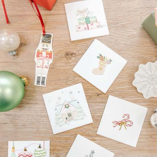 Hand crafted artwork, printed, foiled and hand-glittered in Memphis, TN. on natural white paper, and paired with a vellum envelope. Blank on the inside.