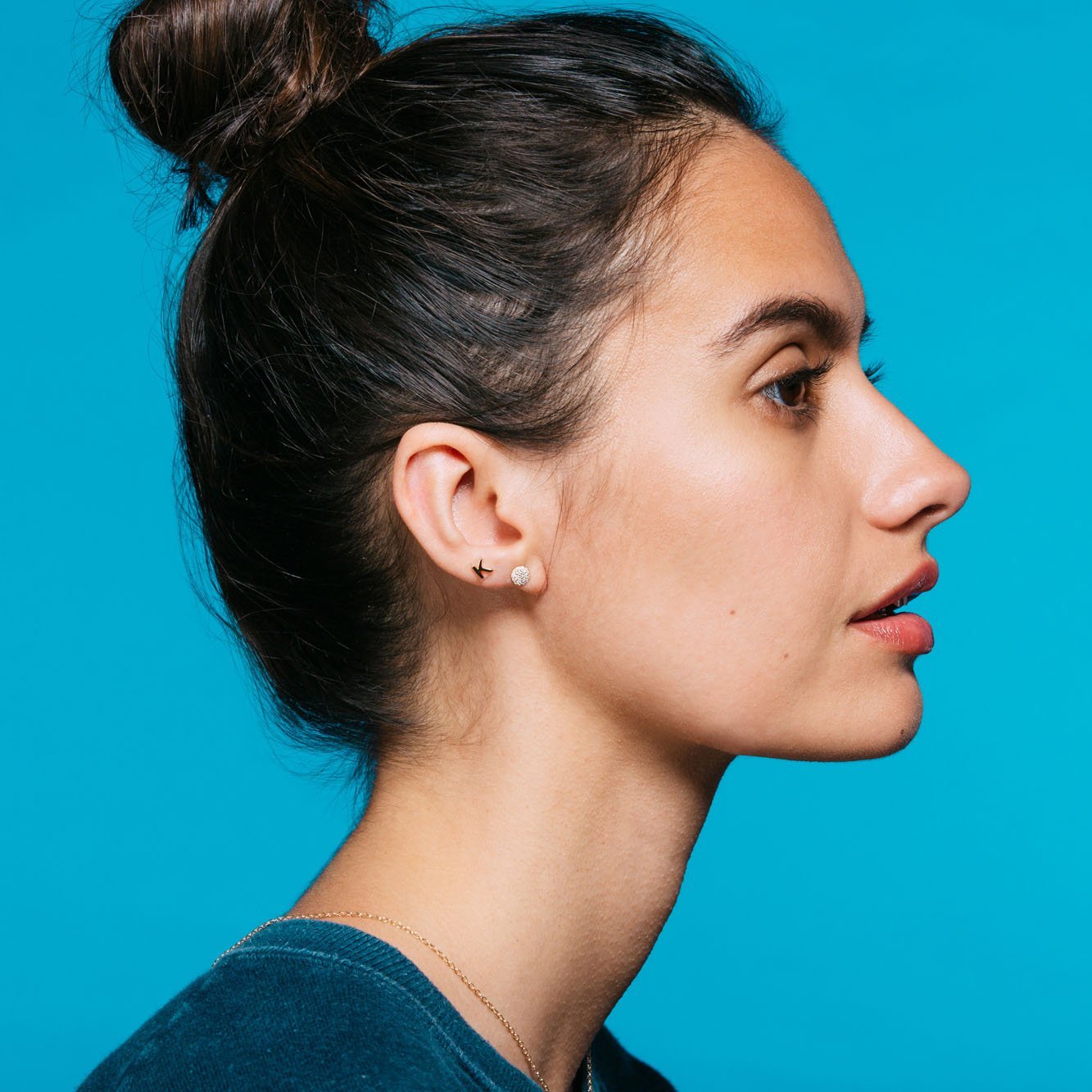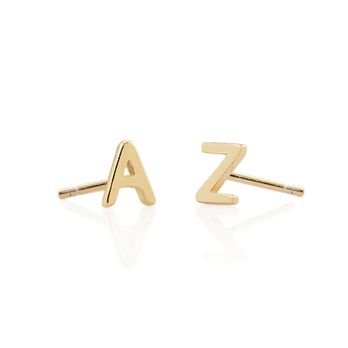 Measuring approximately 0.25 inches, these gold vermeil (solid sterling silver with 18k gold plating) letter stud earrings work all day, for all ages.