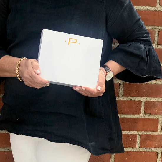 In a league all its own! This premium, Large Gold Foil Initial Notepad boasts 140 Sheets of 80# smooth cover-weight stock, with a velvety smooth writing surface, and 18 pt. backers. You, and your pen, will fall deeply in love. This is the ideal gift when you want to make an impression.
