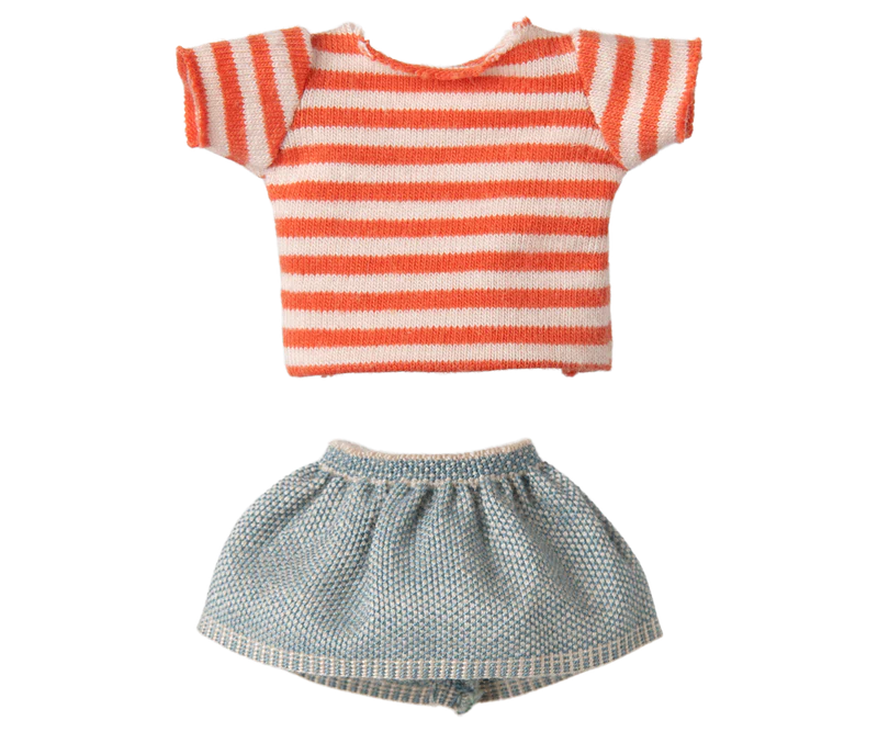 Meet LouiMax's sister - she wears a red striped t-shirt and a denim skirt. She has magnets in her hands and is sold in a very nice gift box.