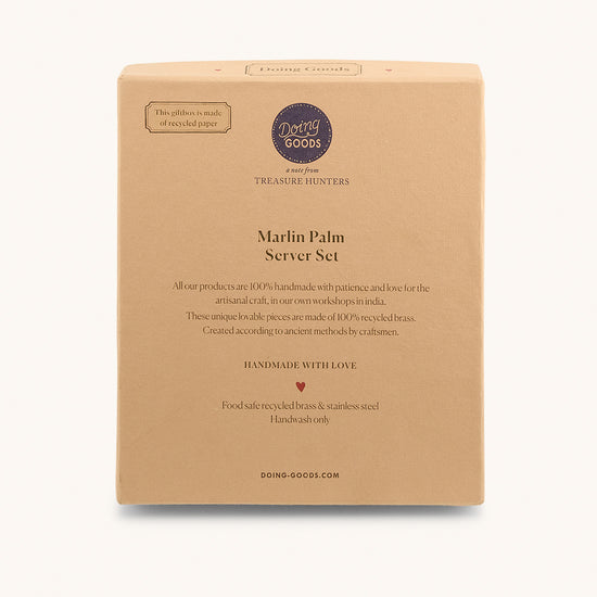 The Marlin Palm Salad Server Set is food safe and designed for those who cherish unique, ethically made home accessories. The palm-inspired design at the handle's end brings a tropical vibe to your dining ensemble, making every salad serving a mini getaway. To keep these servers in pristine condition, hand washing is recommended.