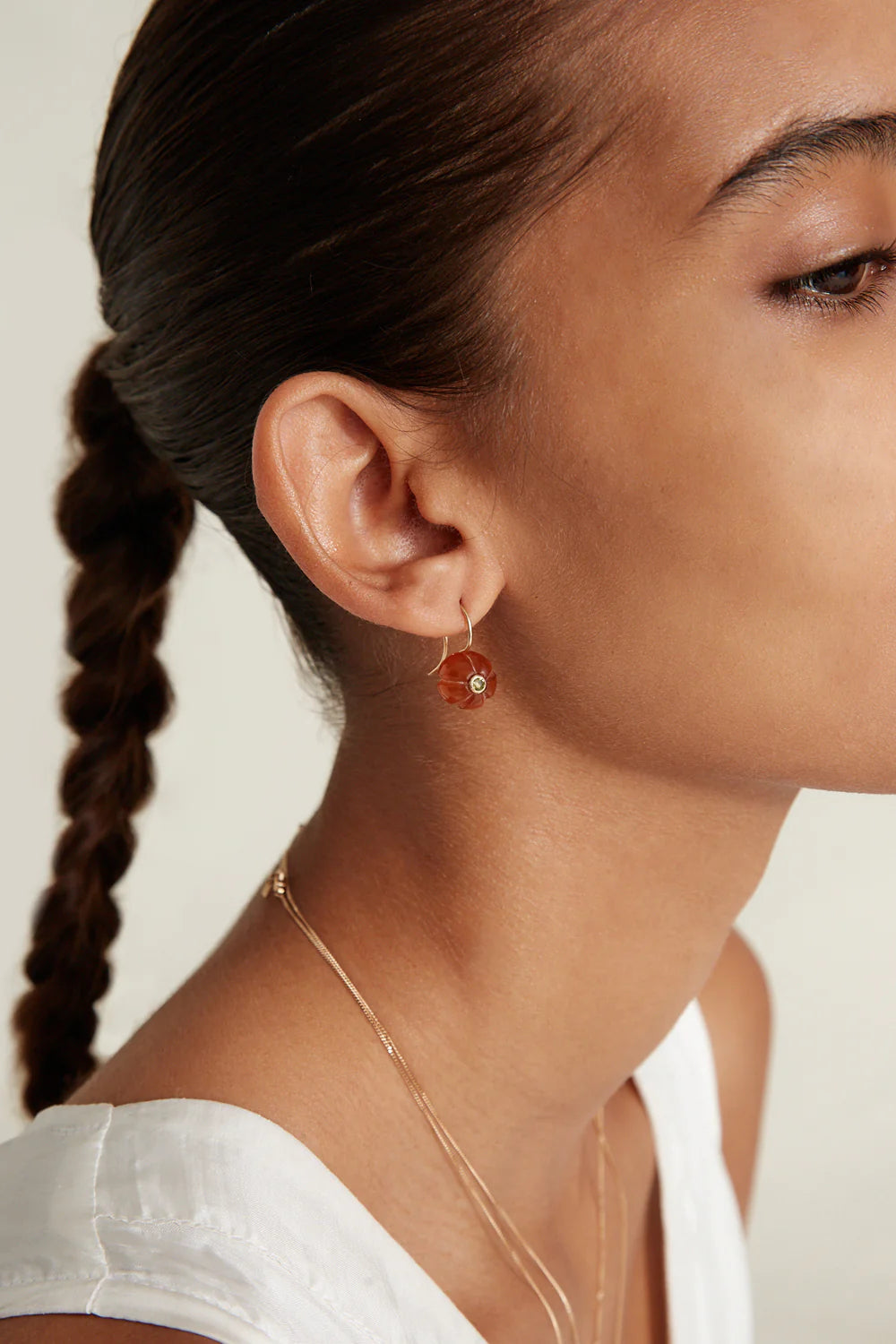 Hand cut brown horn beads are accentuated by vibrant peridot in these 14k gold earrings.