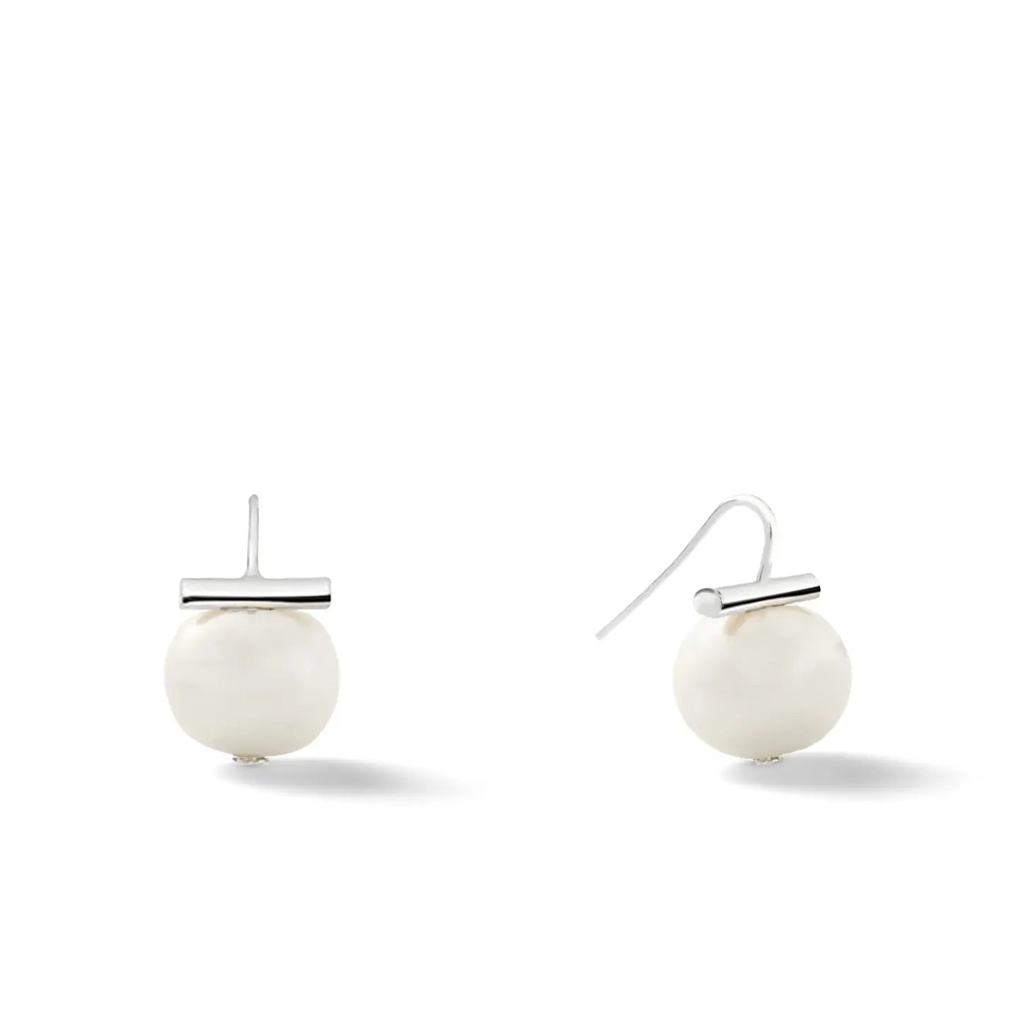 Medium Pebble Pearl Earrings | White and Silver