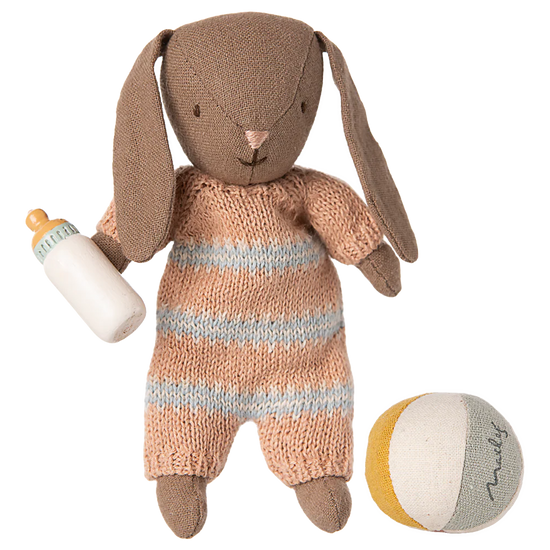 Begin a lifetime of imaginative adventures with the perfect first companion. The Micro Bunny Set from Maileg provides the ideal introduction to the enchanting world of Maileg characters with exceptional Danish craftsmanship and thoughtful details. Available at Frank in Winter Park, this complete gift set includes a soft micro-sized bunny with magnets in hands to hold the included baby bottle, plus a small ball for playful moments. Everything fits together beautifully in charming packaging, making this the perfect gift for starting a treasured bunny collection that creates memories for years to come.