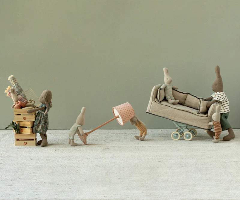 Our beautiful Maileg Miniature Floor lamp is a must-have. The lamp will light up the room with a soft tone - remember to turn off the light when your friends go to bed.