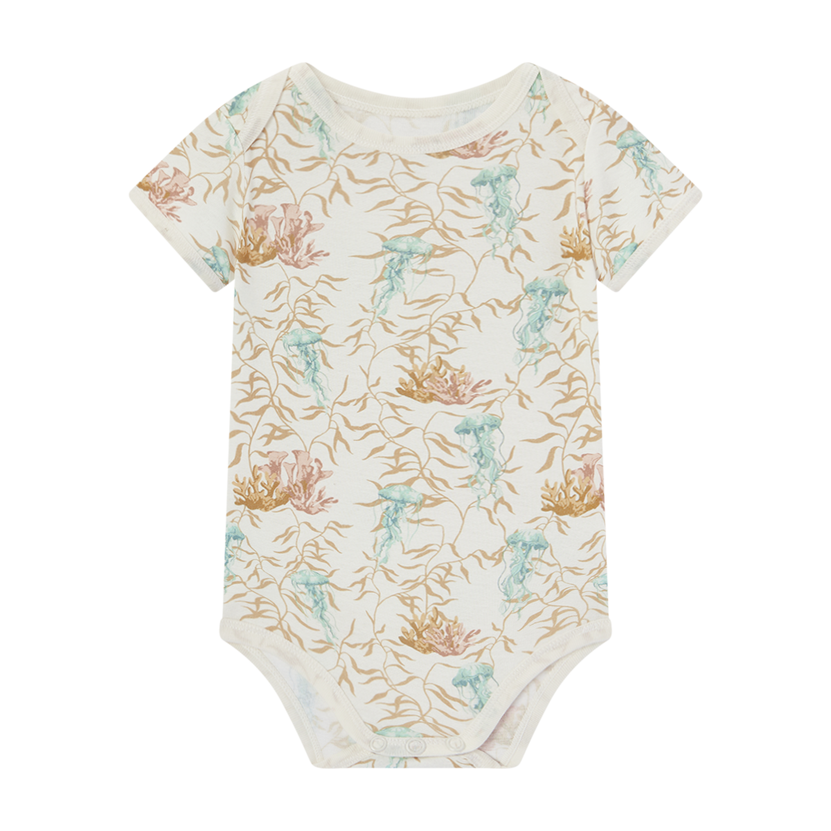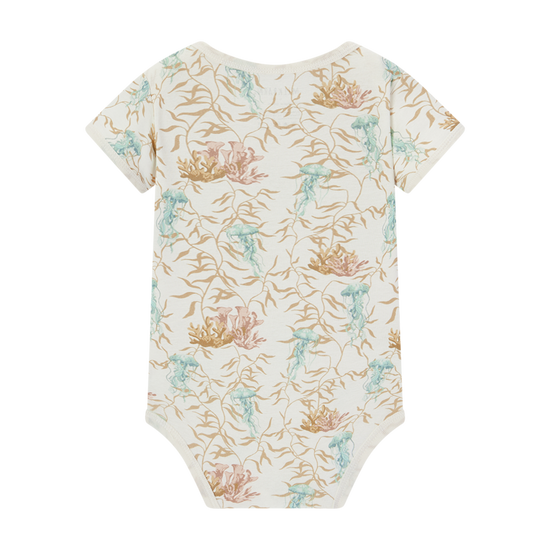 Milkbarn's soft and soothing newborn and baby Organic Cotton One Piece merges understated form and functionality. The envelope neckline and ring-snap closures allow for effortless, one-handed undressing of your little ones. The contrasting edging highlights the structure and fabric design.