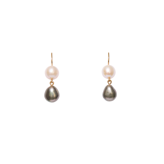 18K gold plated sterling silver earrings featuring freshwater pearls on French hooks. 1 3/8in. drop.