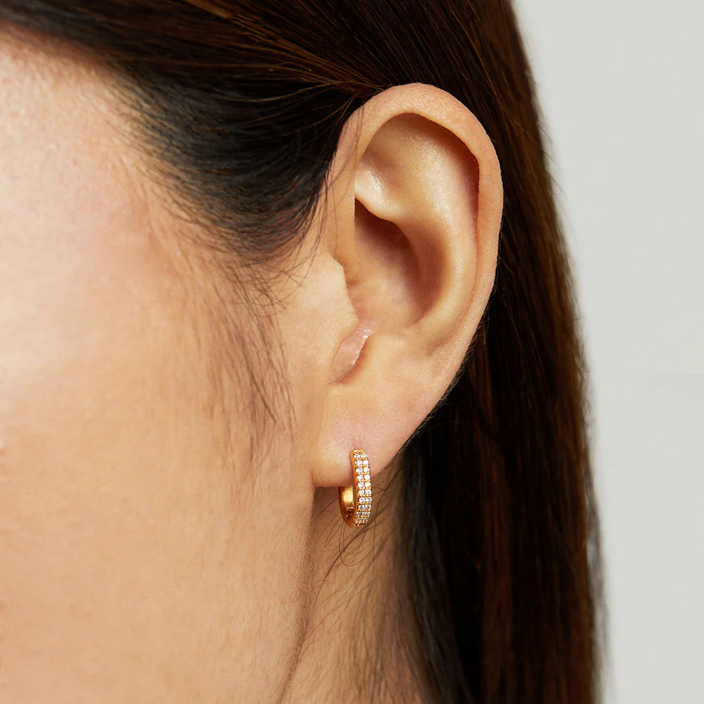 The Petite Pave Huggies are perfect for stacking or as a classic, everyday piece.