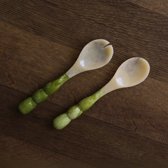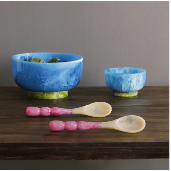 These translucent resin salad servers with vibrant “bubble” handles, and tines and spoons resembling natural horn are perfect for serving salads, indoors or outdoors. Pair with any other Rio Bowls or Salad Servers for the perfect set!
