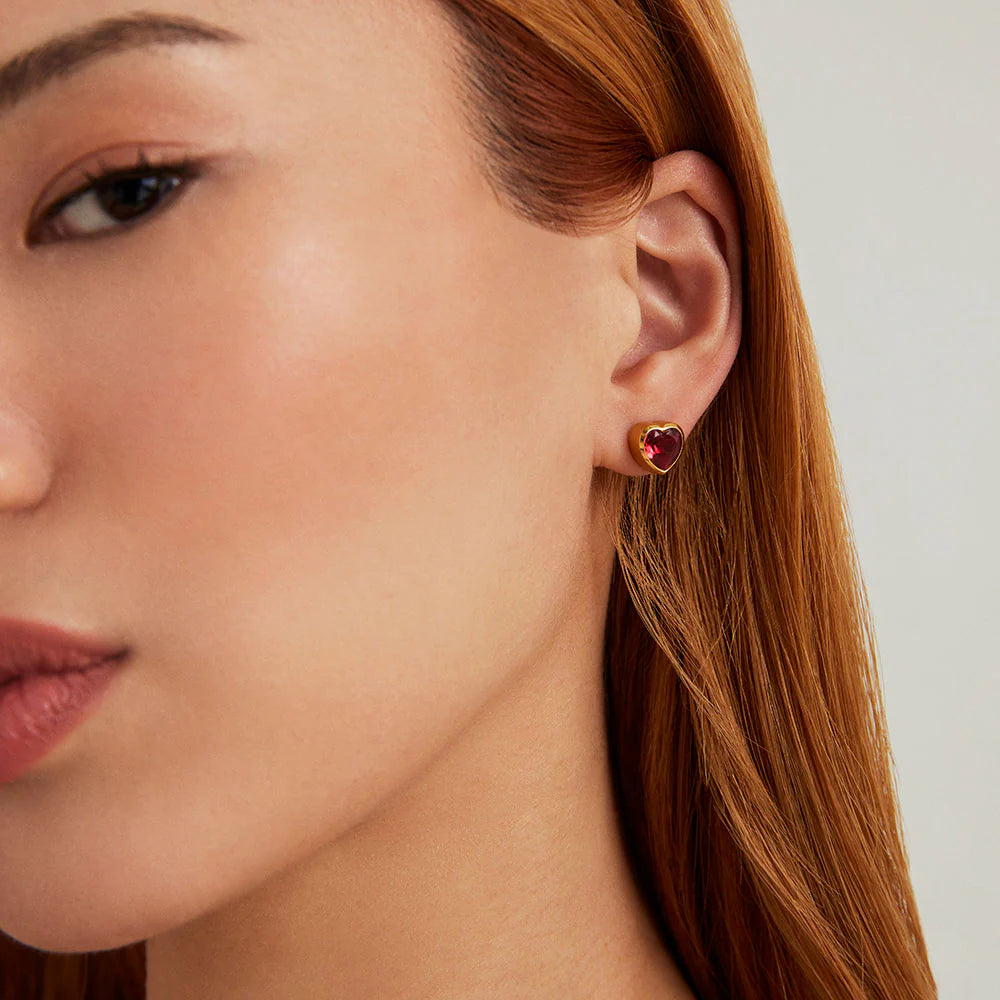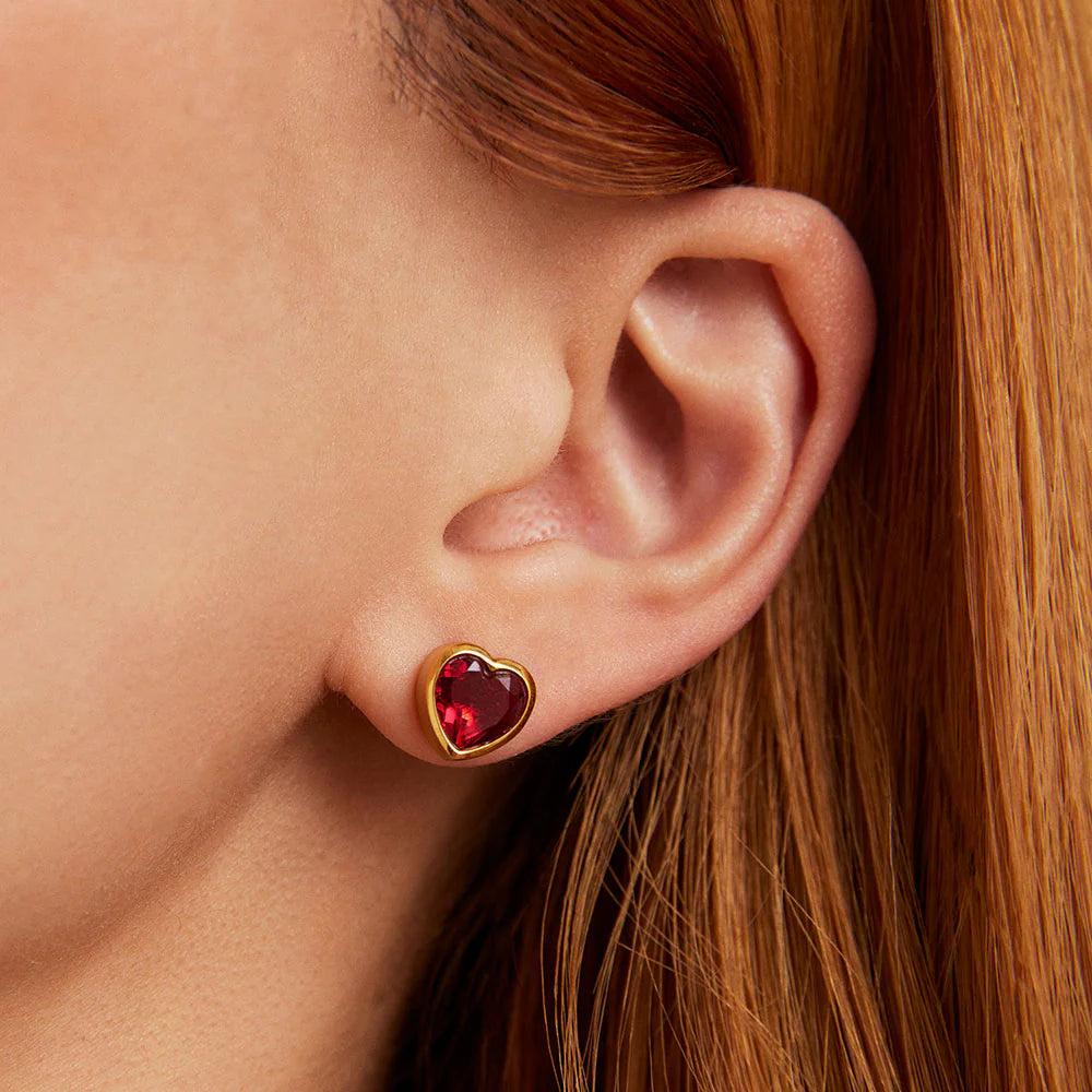 Best-selling studs get the heart-shaped treatment and a Classic Red gemstone—leaving even more to love about the daytime-to-date-night earrings.