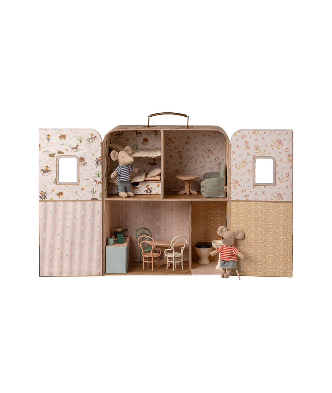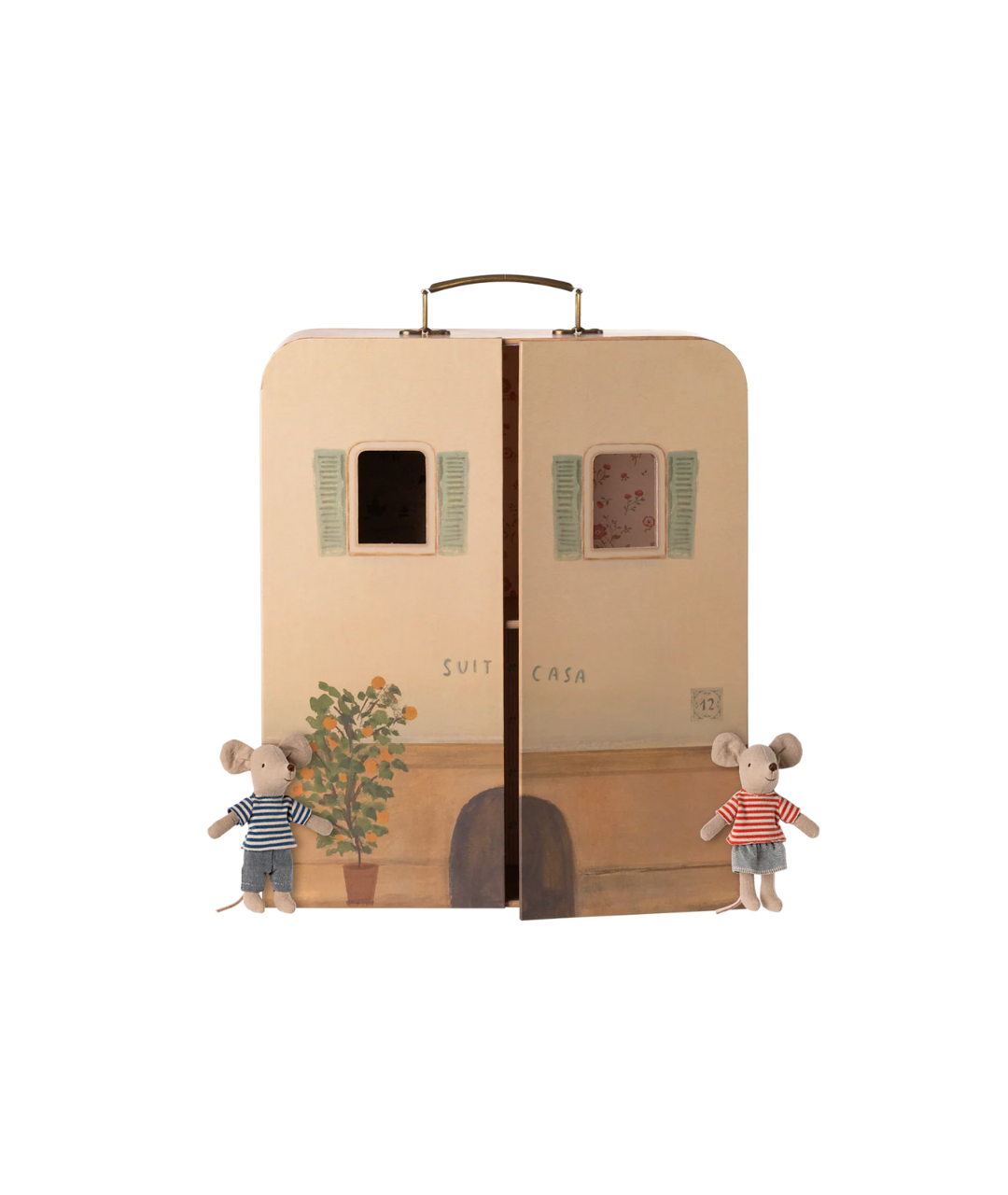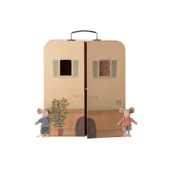 Adventures await wherever imagination travels with the perfect portable mouse home. The SuitCasa from Maileg is a charming travel-ready house that brings Danish design ingenuity to miniature living. Available at Frank in Winter Park, this delightful set includes the iconic SuitCasa house along with Little Brother and Little Sister Mice, plus two sets of soft bedding to ensure cozy accommodations. Perfectly portable and endlessly versatile, this complete set launches countless storytelling adventures while offering compatibility with an entire collection of SuitCasa-sized furniture.