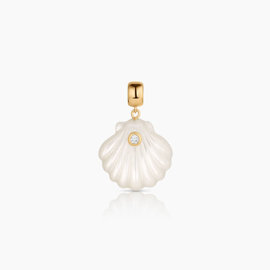 14k gold plated scallop shell mother of pearl bail charm with cubic zirconia.