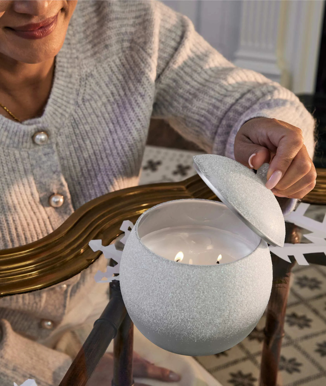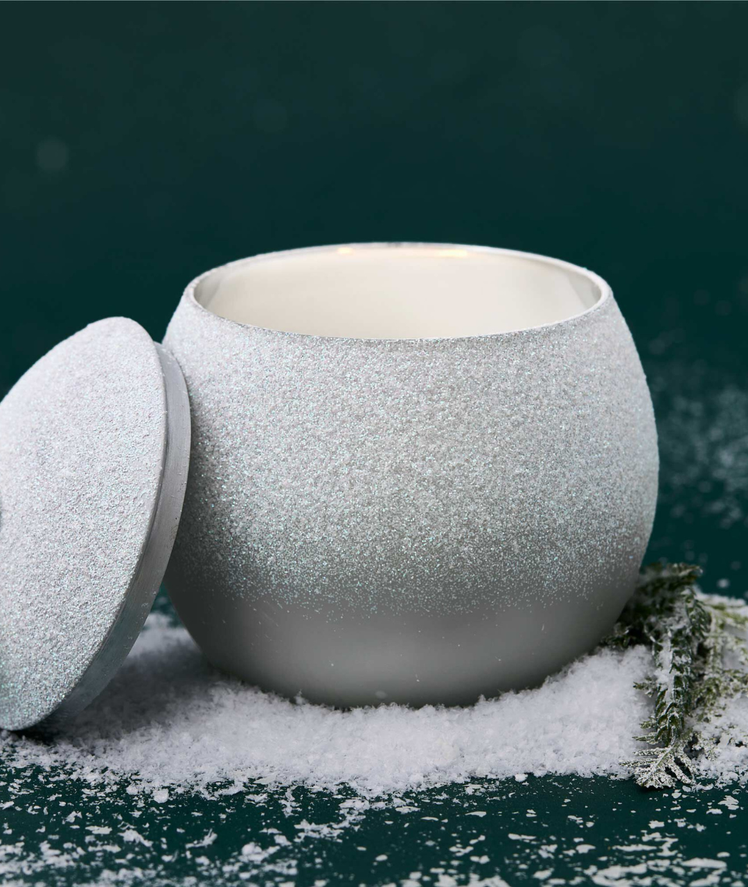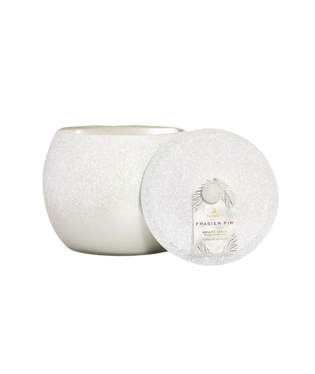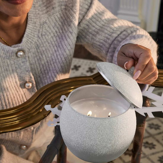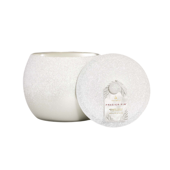 A glittering snow-like design and iconic Frasier Fir fragrance bring the elegance of a beautiful, flocked tree indoors.