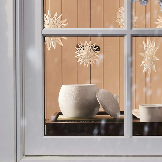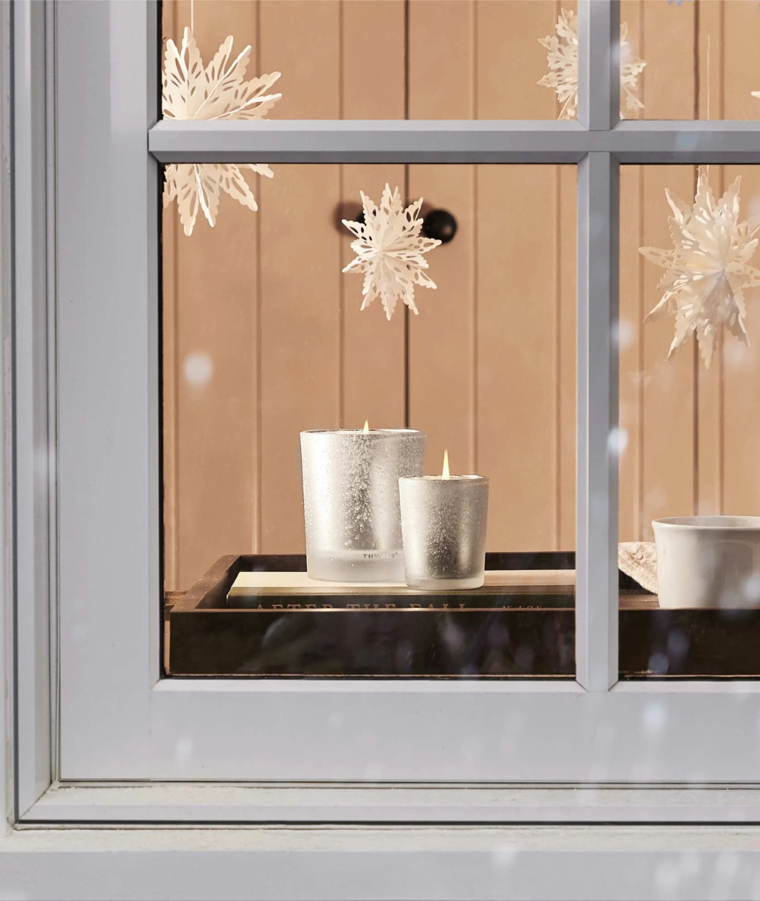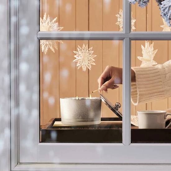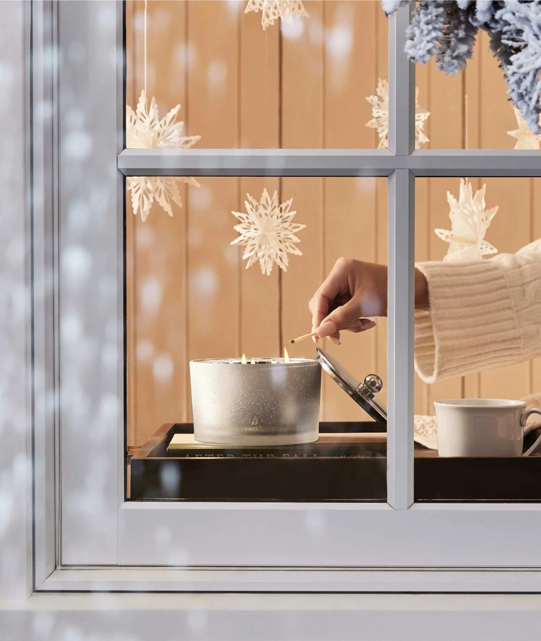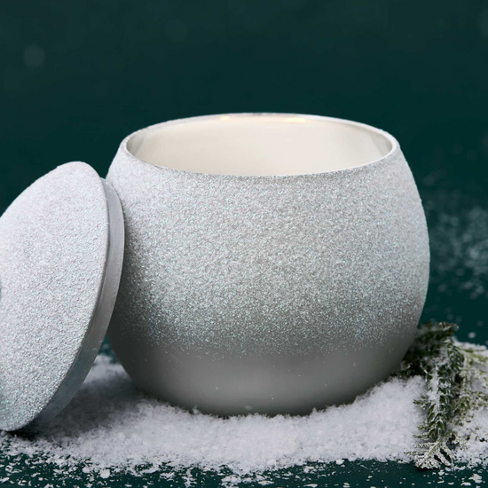 A glittering snow-like design and iconic Frasier Fir fragrance bring the elegance of a beautiful, flocked tree indoors.