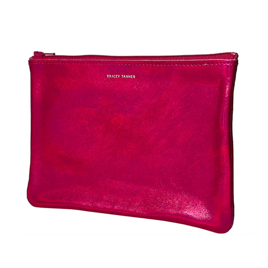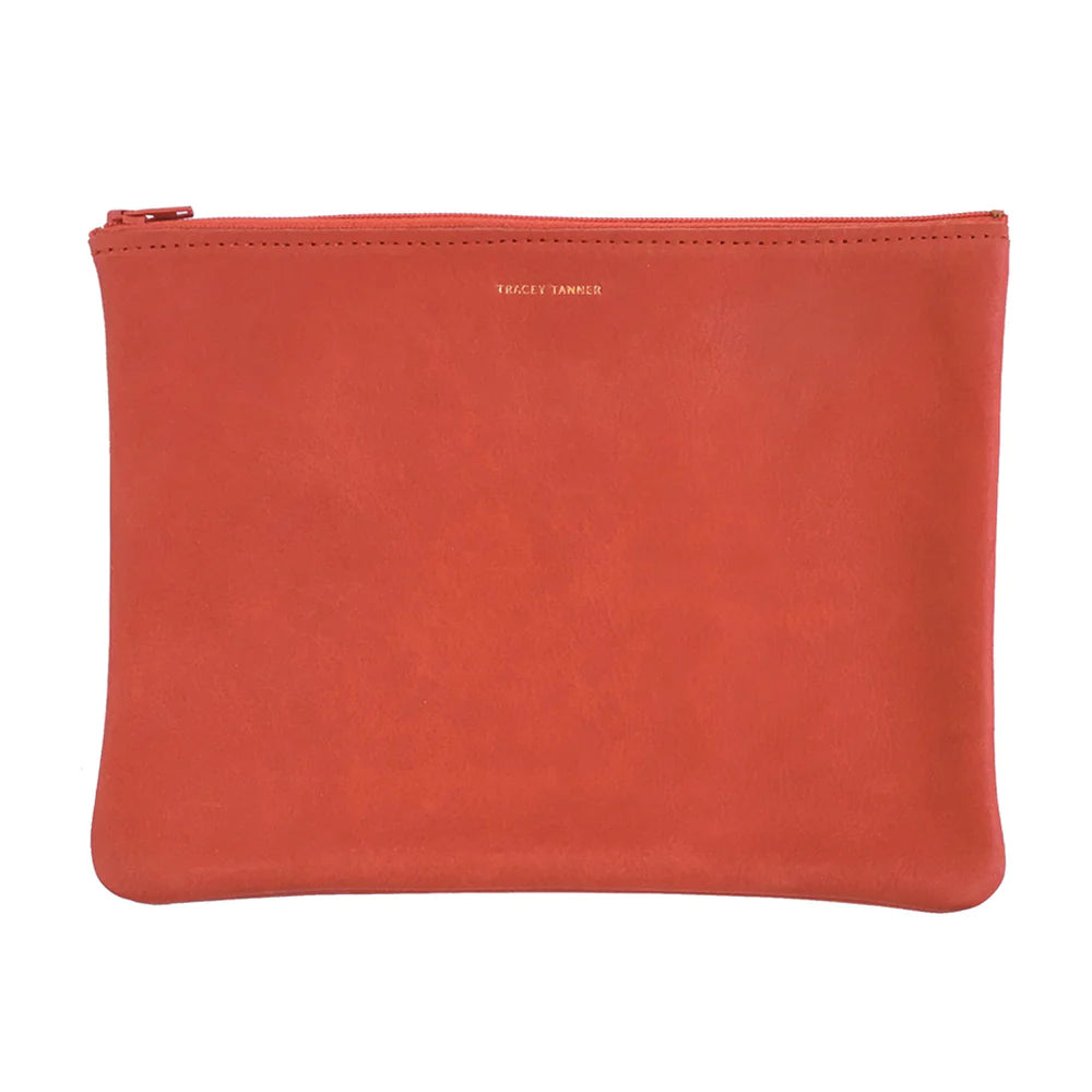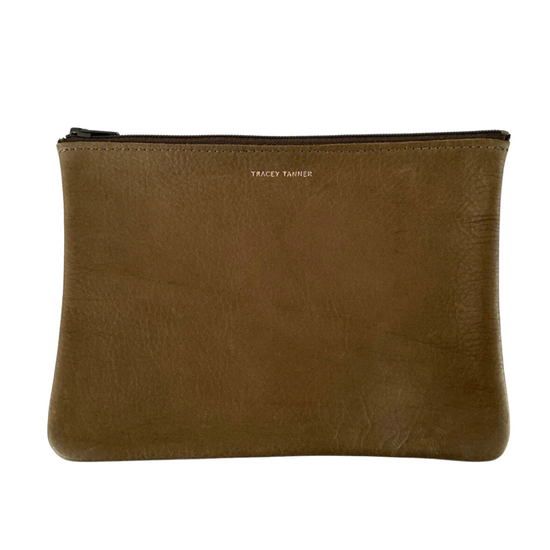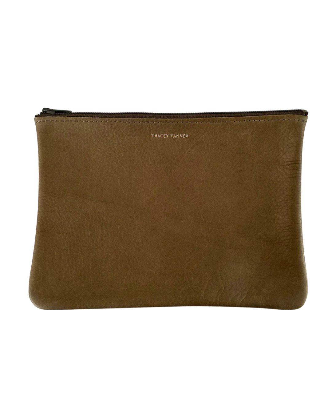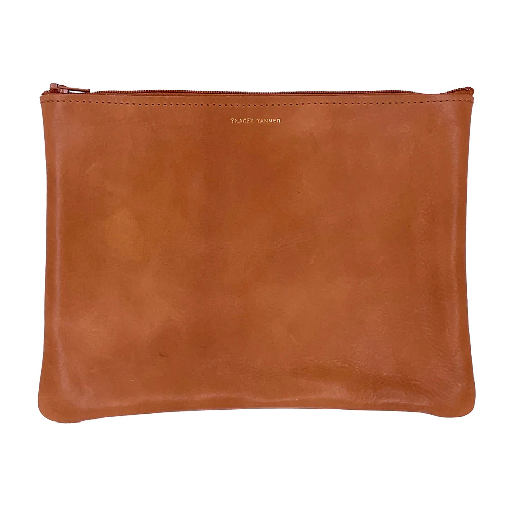 Leather flat zip-top pouch designed to hold your phone, wallet and cosmetics or as a sleeve for an iPad Mini or Kindle: Use it to organize your essentials in a larger bag or carry it alone as a clutch.