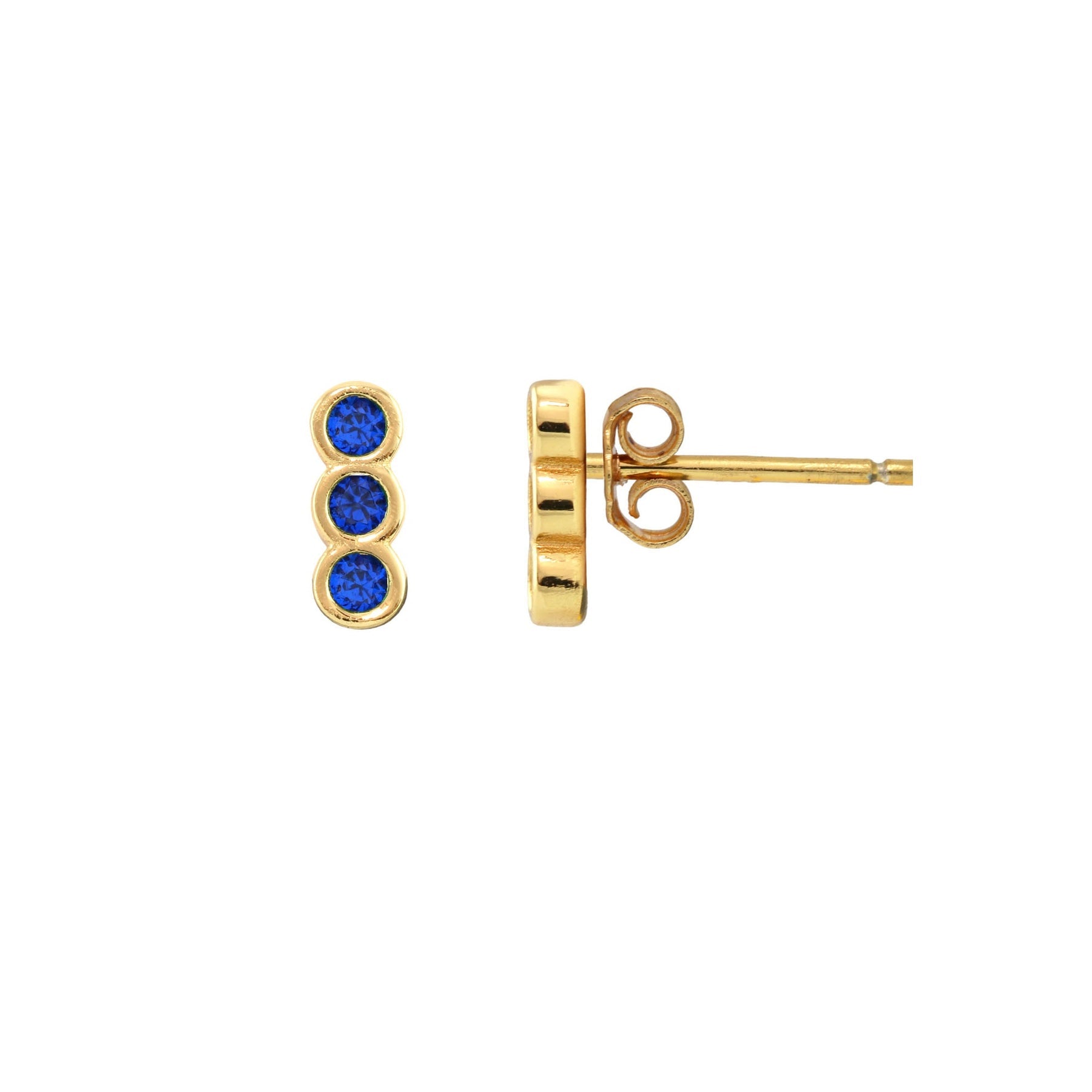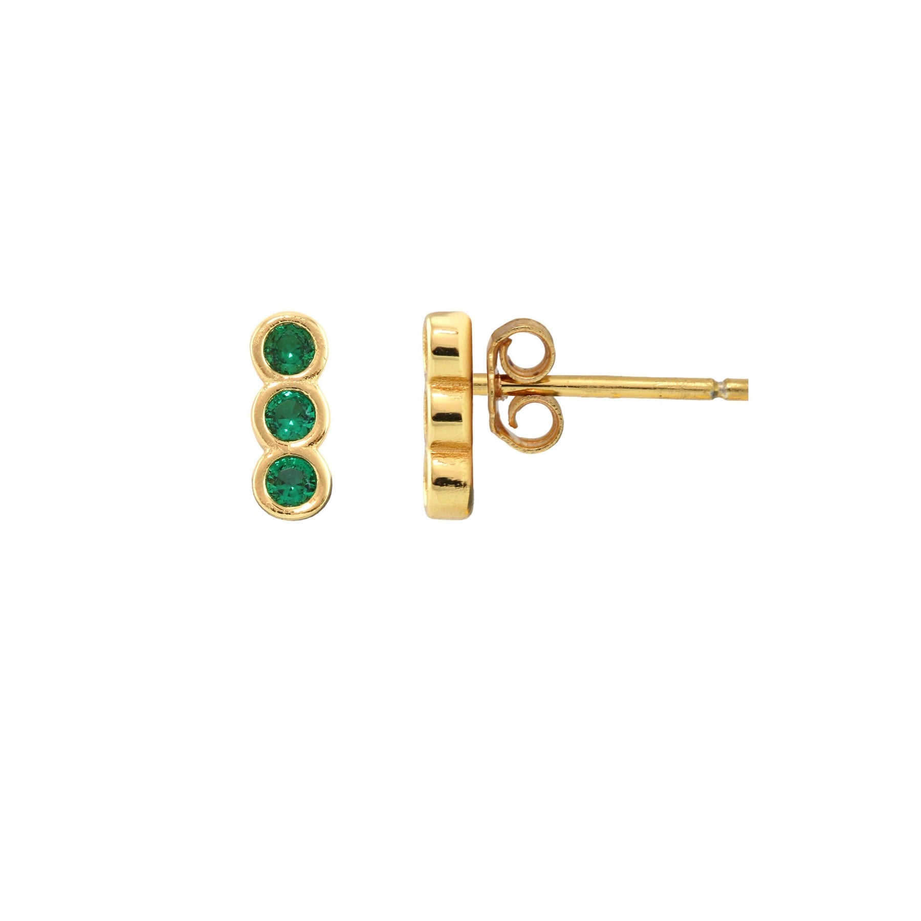 Three in a row. Cubic zirconia crystals in a bezel setting.