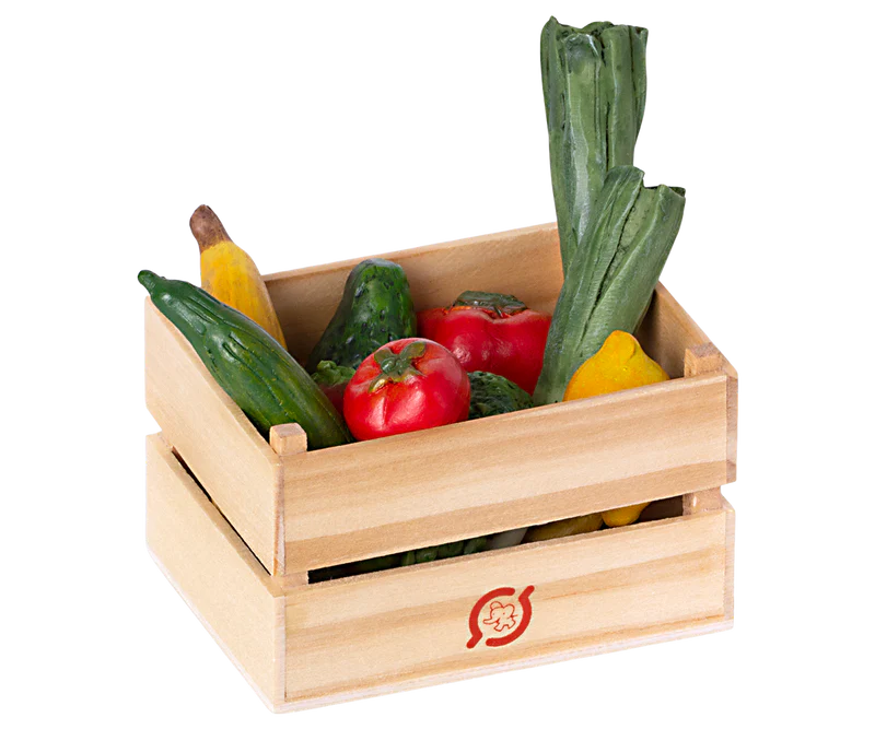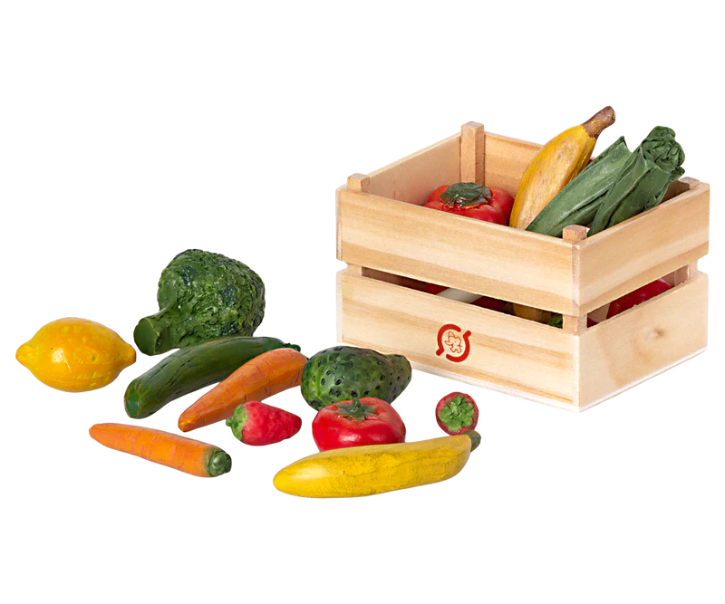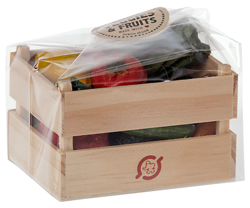Healthy eating begins with beautiful, fresh produce. The Miniature Veggies and Fruits from Maileg brings nutritious food options to mouse kitchens with exceptional Danish craftsmanship and incredible attention to detail. Available at Frank in Winter Park, this organic food crate includes a charming wooden box filled with miniature fruits and vegetables, each lovingly hand-painted with remarkable detail. As every doctor reminds us to remember our fruits and veggies, this delightful set makes healthy eating fun while teaching nutrition awareness. Hand-painted variations make each piece unique and special.