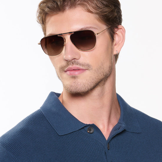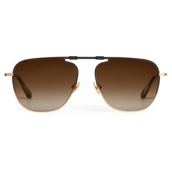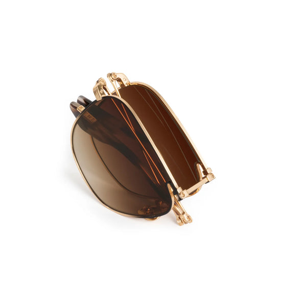 A new level of luxury. ZANDER FOLD is a light-weight & refined aviator that—as the name suggests—features functional temples that satisfyingly fold into a compact shape. Constructed entirely from precious metal with an oversized fit on most face shapes. Includes an additional mini case that the folded frame fits into for those on-the-go.
